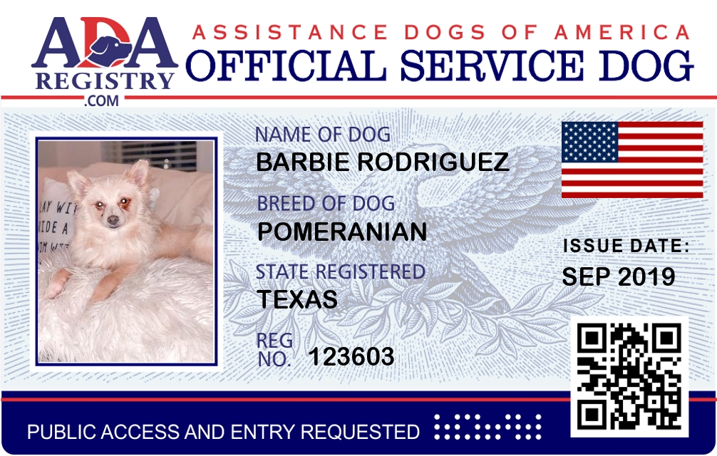 Service Dog Registration for Barbie Rodriguez