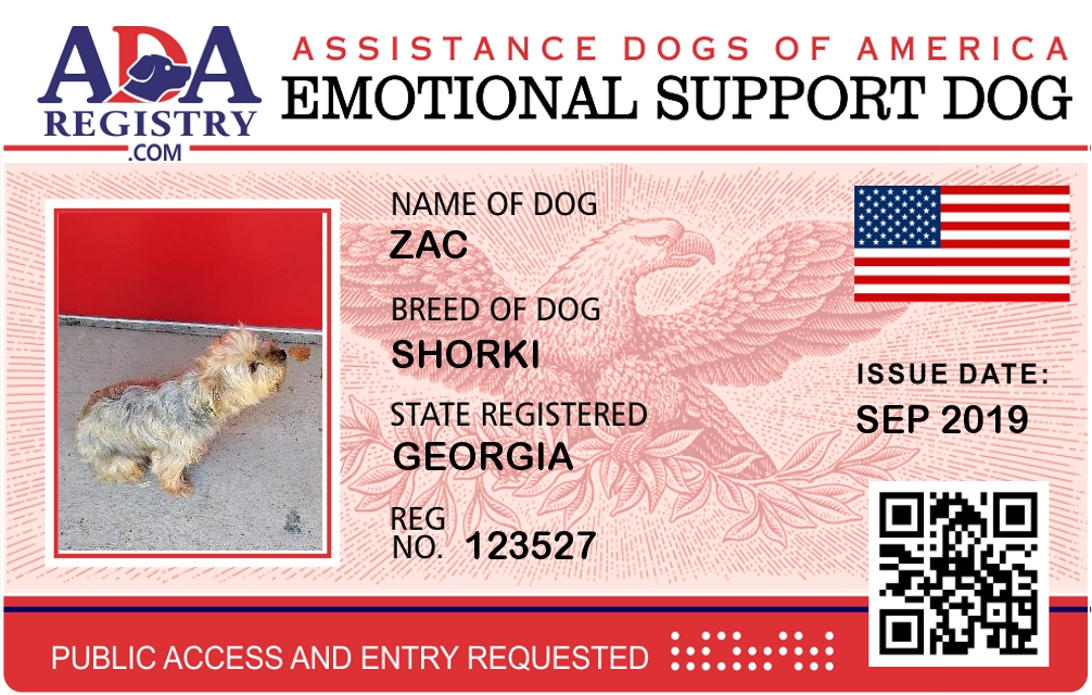 Emotional Support Dog Registration for Zac
