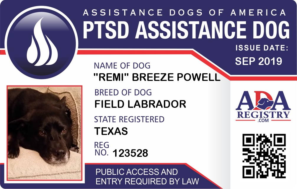 PTSD Assistance Dog Registration for "Remi" Breeze Powell