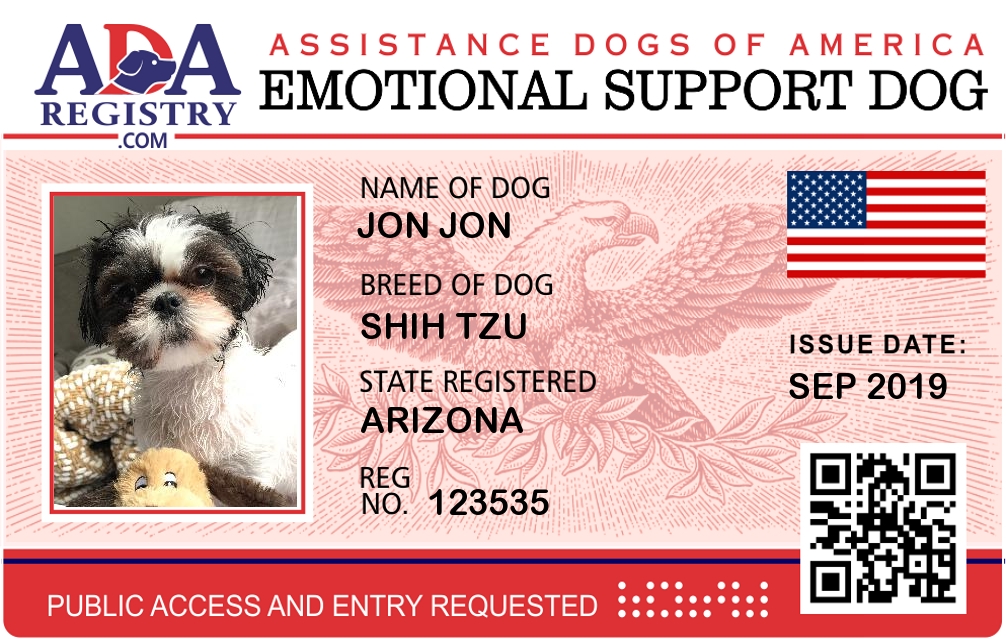 Emotional Support Dog Registration for Jon Jon