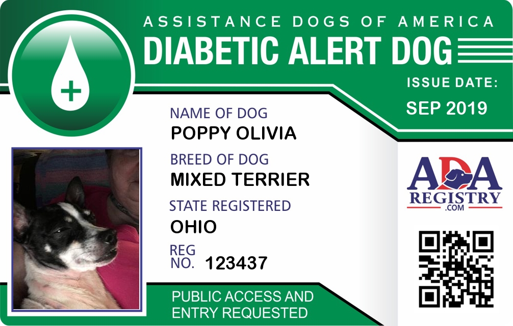 Diabetic Alert Dog Registration for Poppy olivia