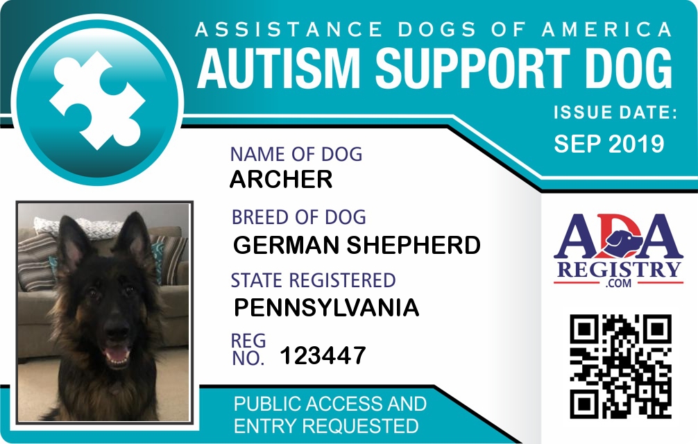 Autism Assistance Dog Registration for Archer