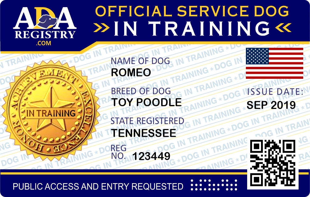 Service Dog In Training Registration for Romeo