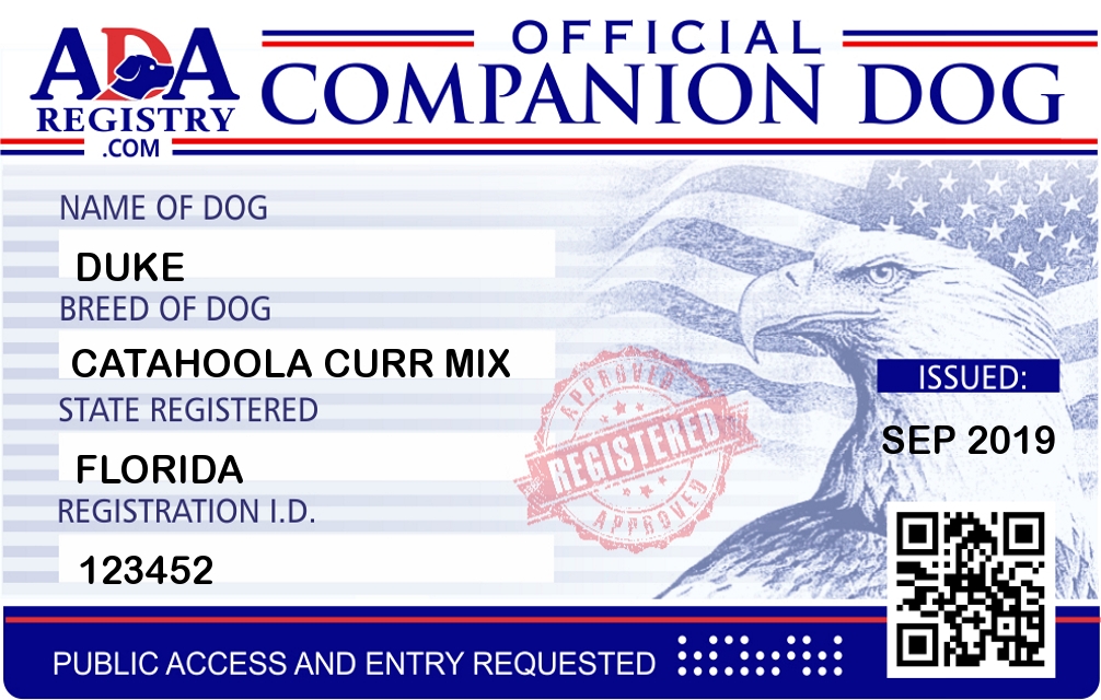 Companion Dog Registration for DUKE
