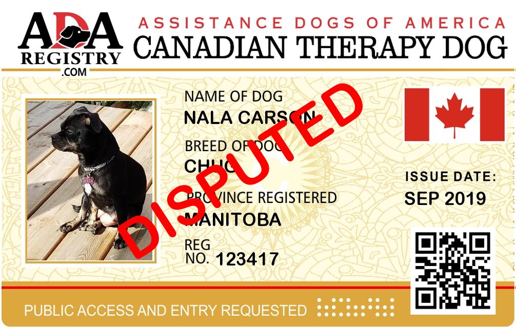 Therapy Dog Registration for Nala Carson