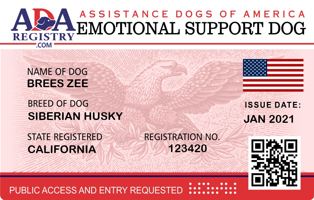 Emotional Support Dog Registration for Brees Zee