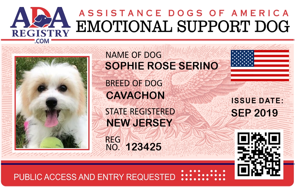 Emotional Support Dog Registration for Sophie Rose Serino