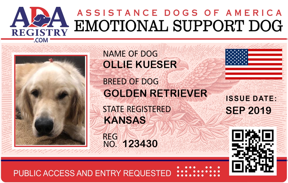Emotional Support Dog Registration for Ollie Kueser