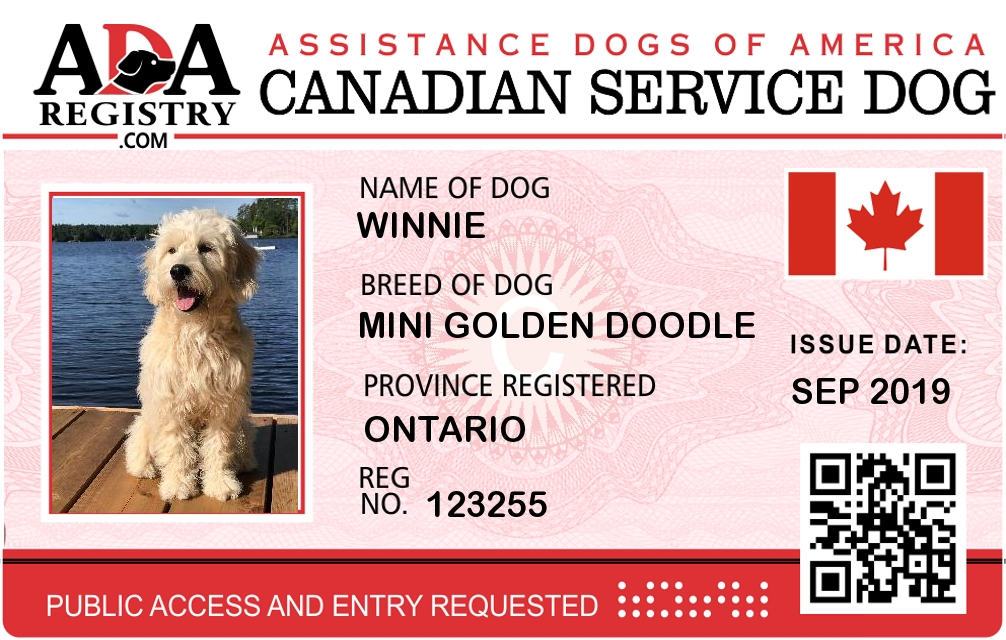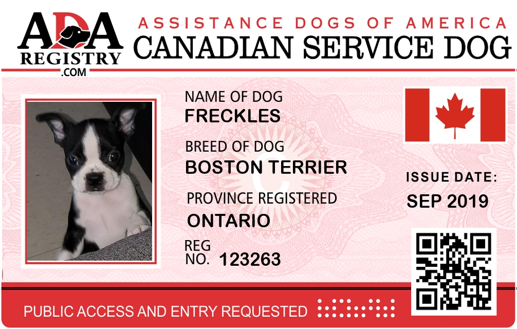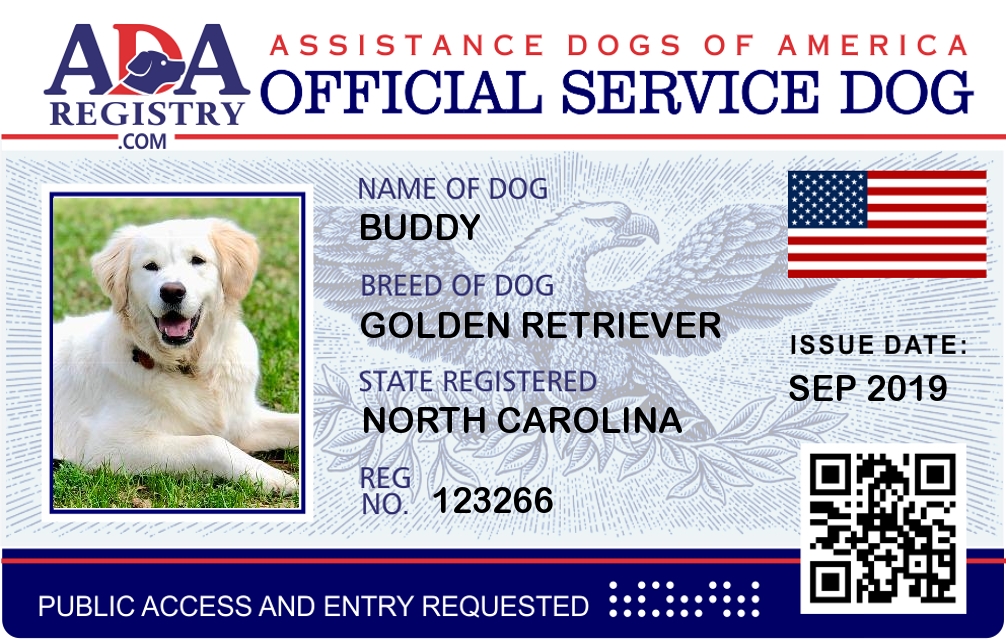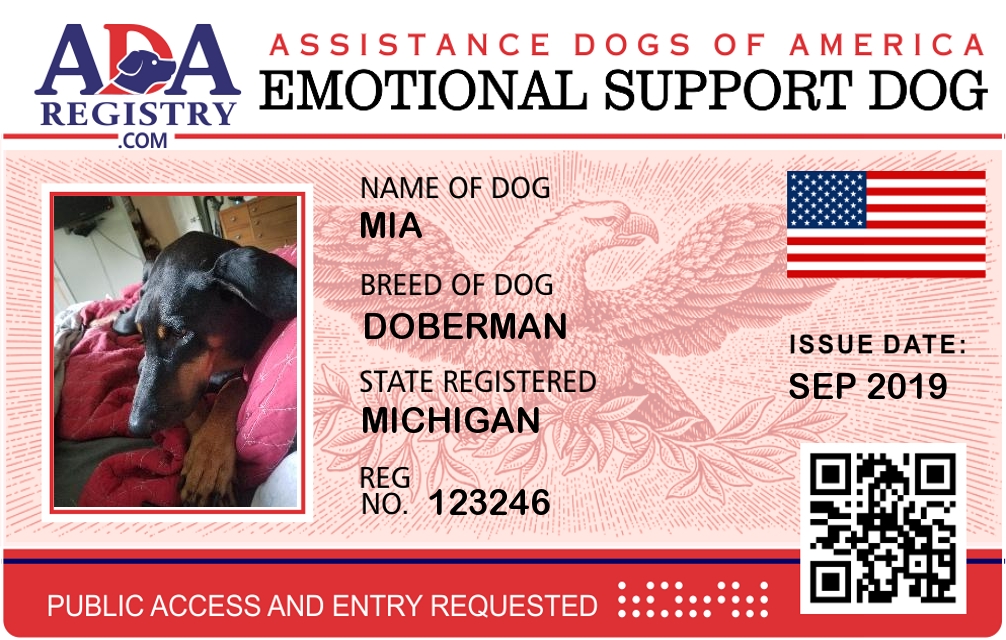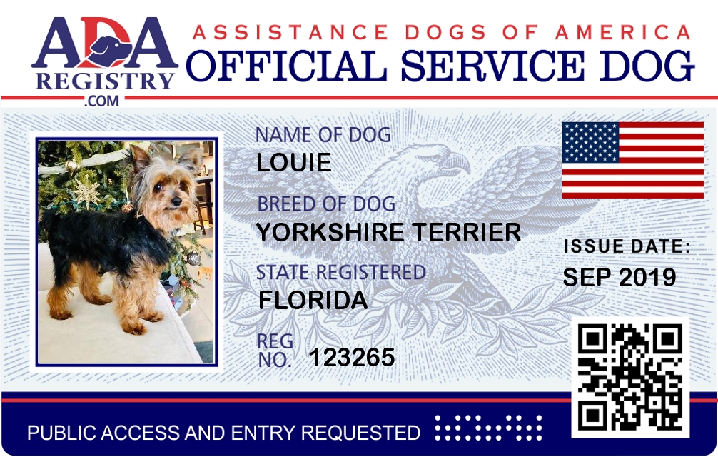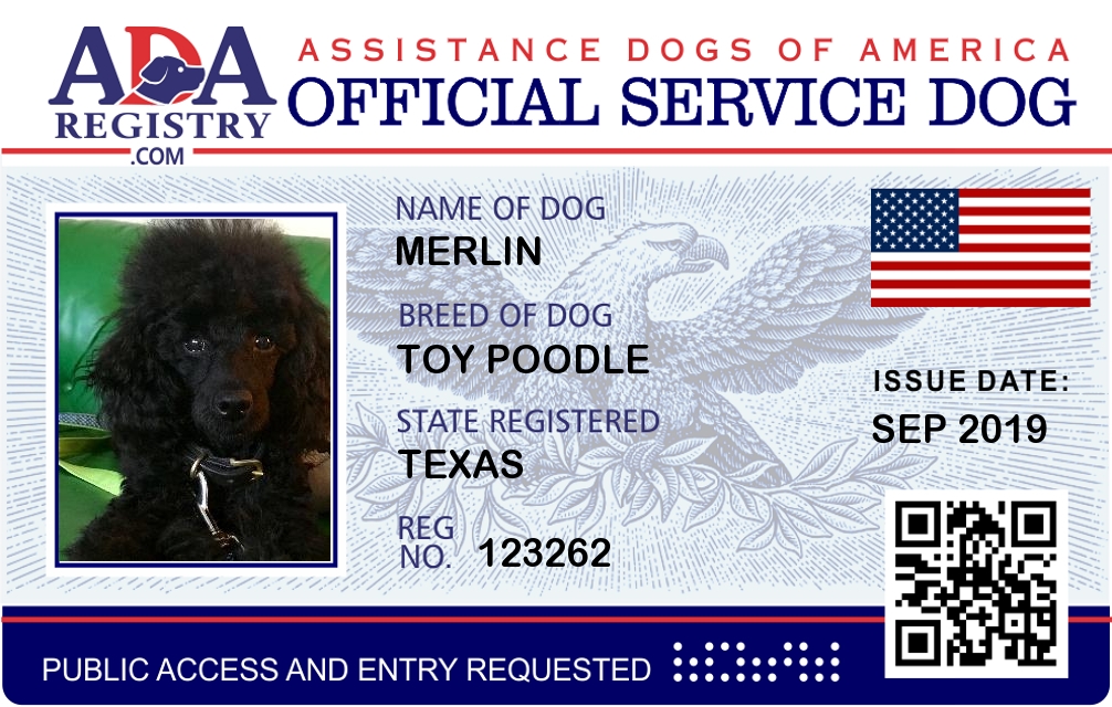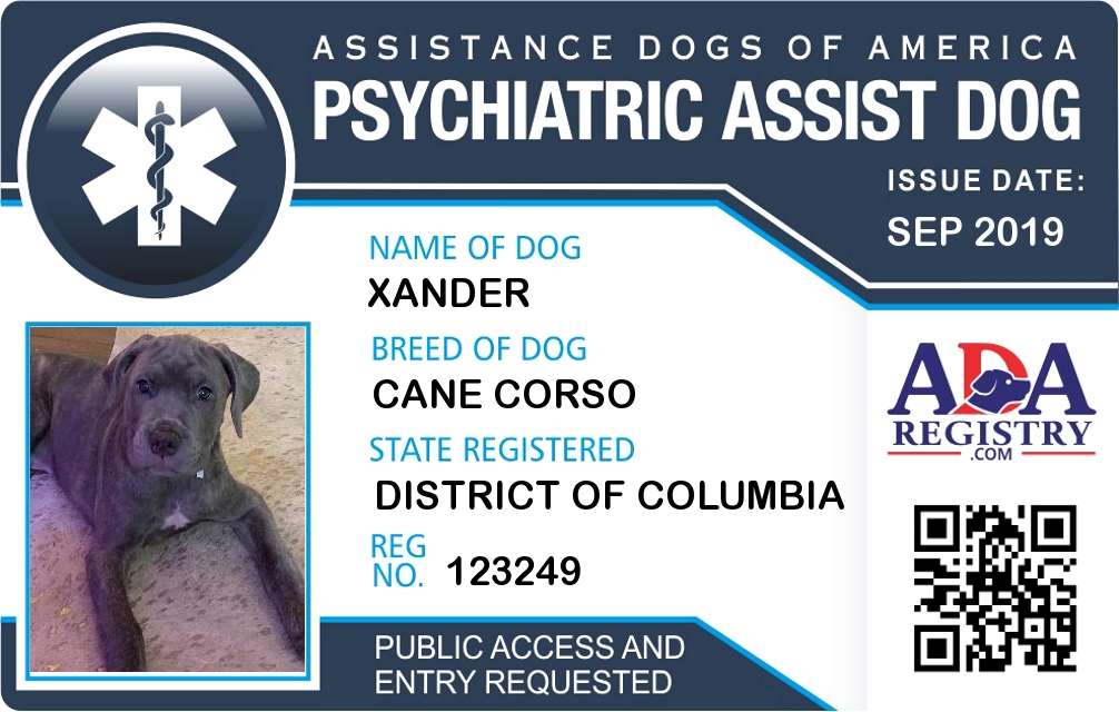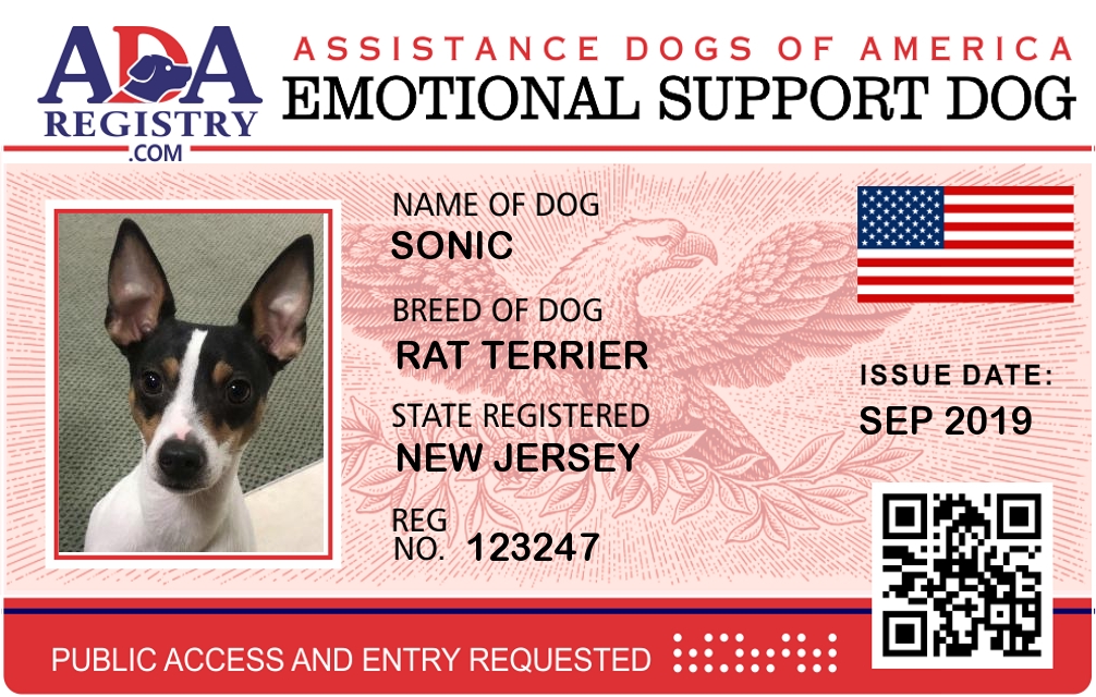 Emotional Support Dog Registration for Lucas Wentworth Cook