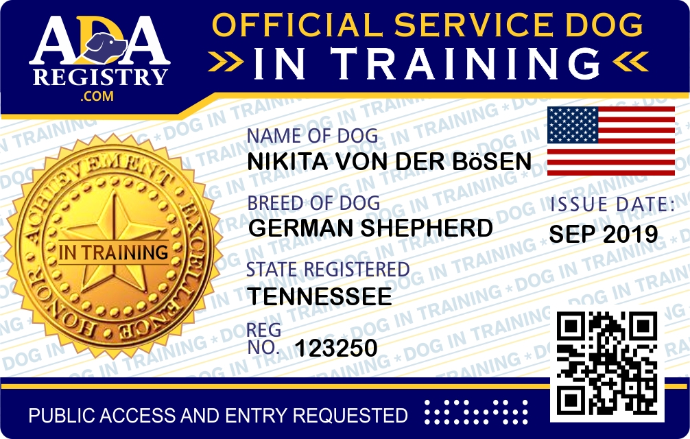 Service Dog In Training Registration for Judas Von Bucht-Nebe