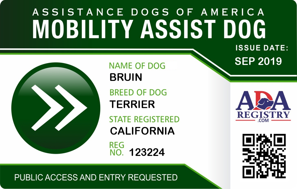 Registration Type: Brace / Mobility Assistance Dog Registration