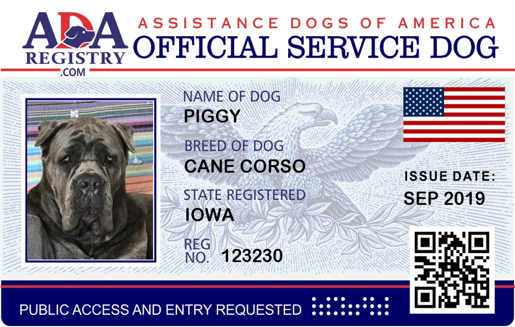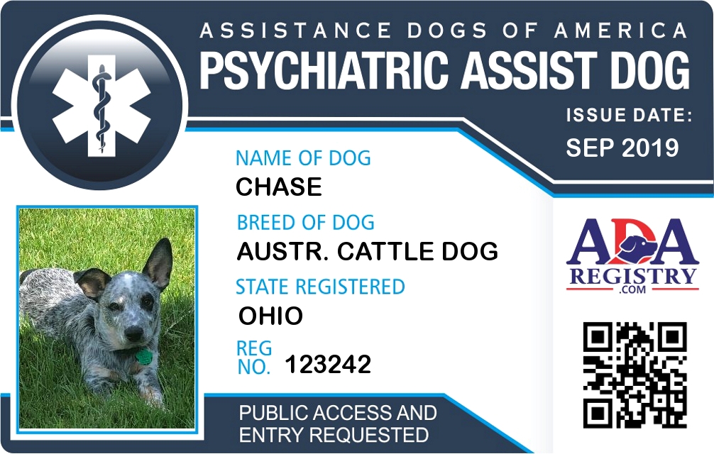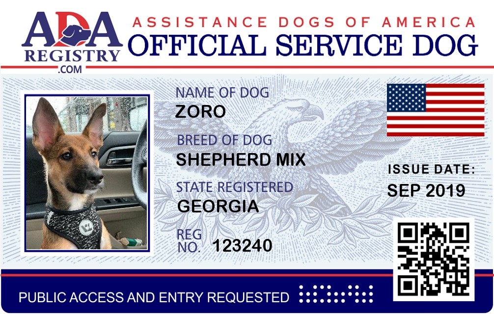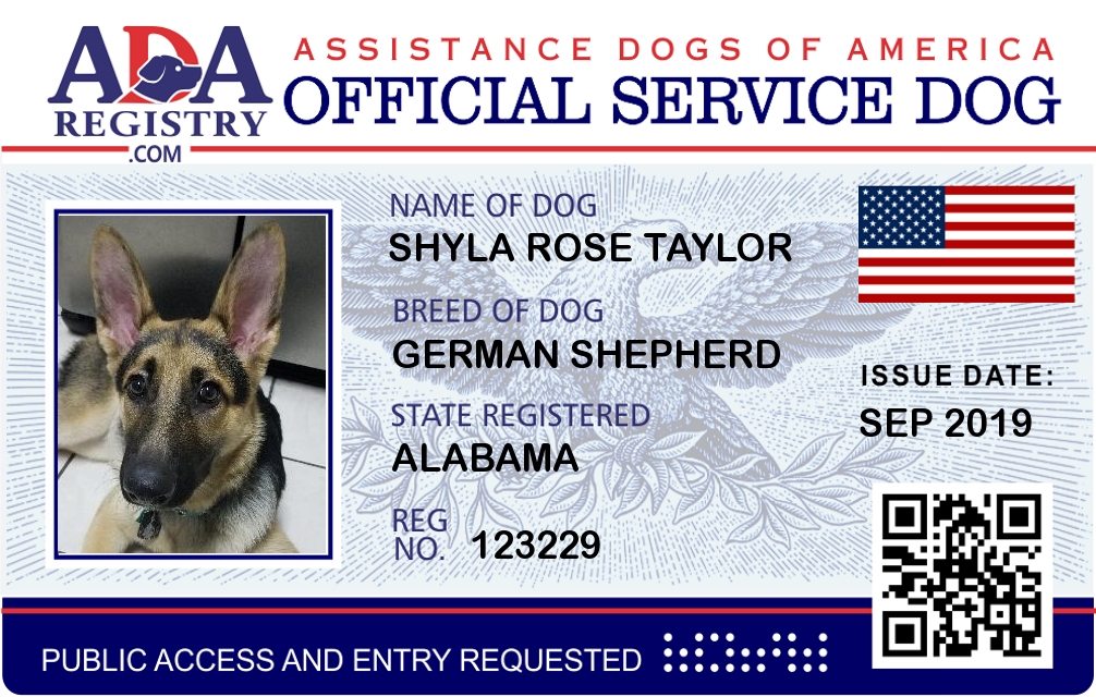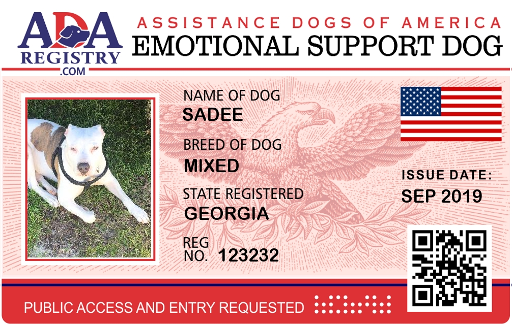 Emotional Support Dog Registration for Bindi Jo Whaley