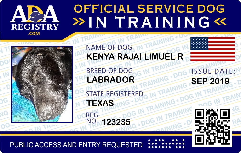 Service Dog In Training Registration for Kenya rajai Limuel R