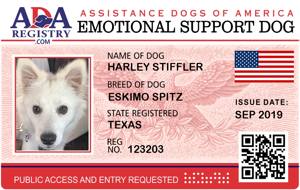 Emotional Support Dog Registration for Harley Stiffler