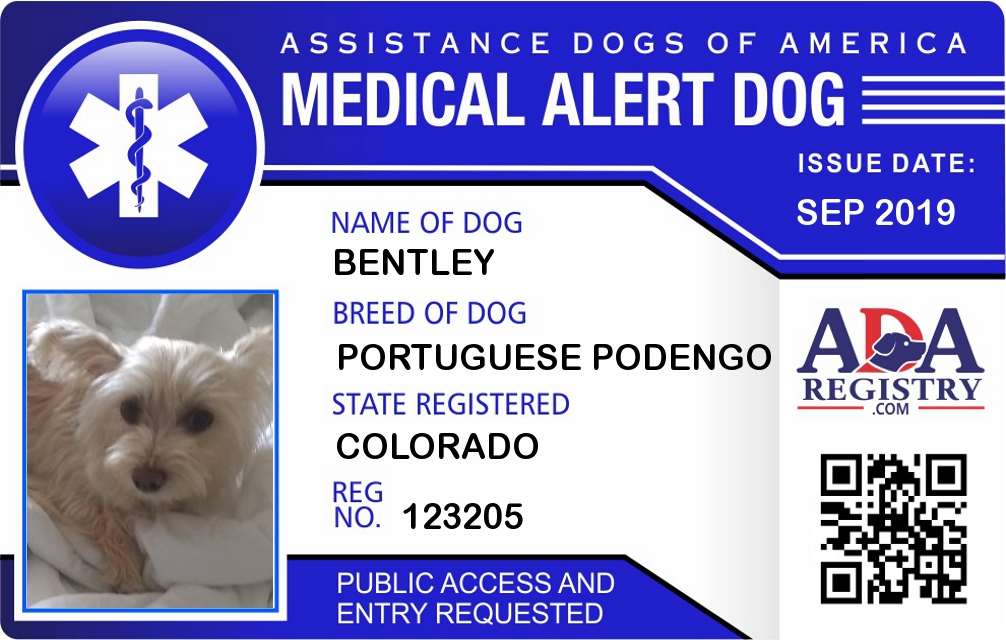 Medical Alert Dog Registration for Bentley