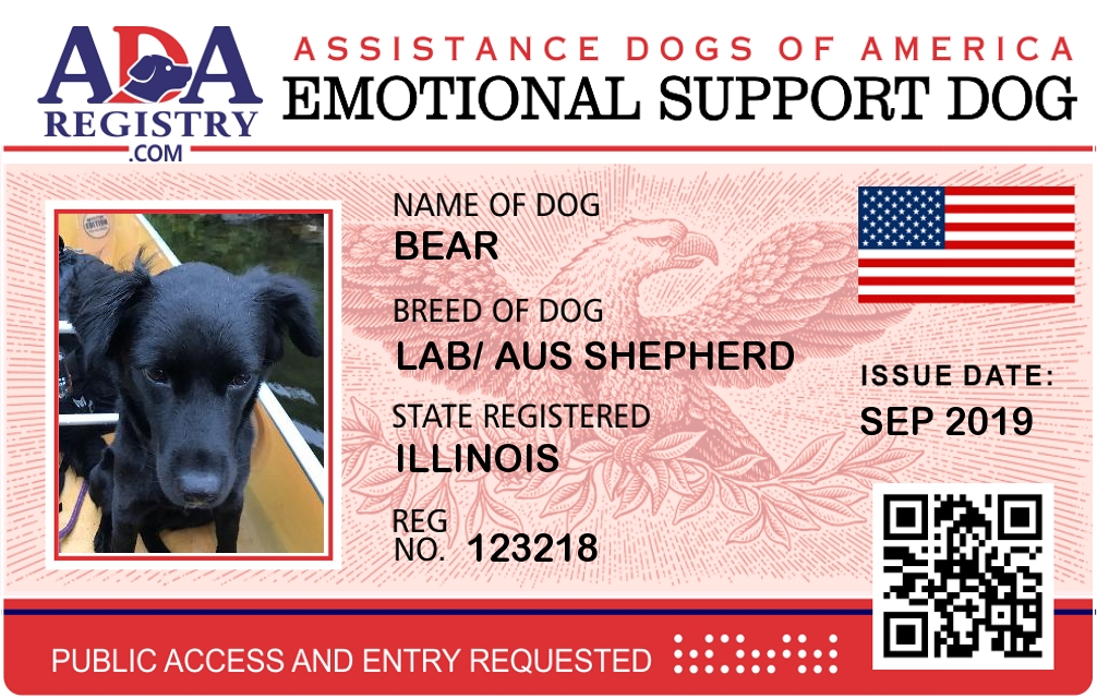 Emotional Support Dog Registration for Bear