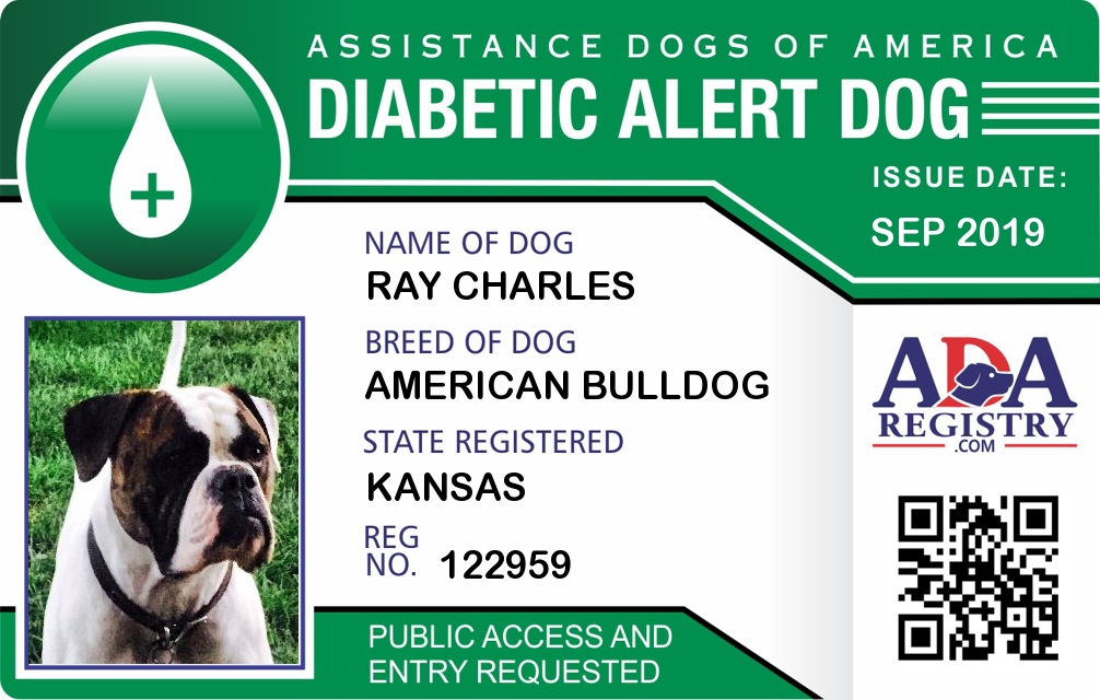 Diabetic Alert Dog Registration for Ray Charles