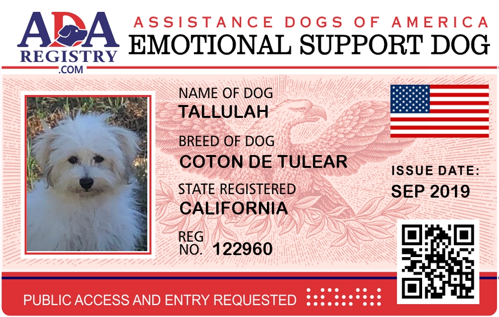 Emotional Support Dog Registration for Tallulah