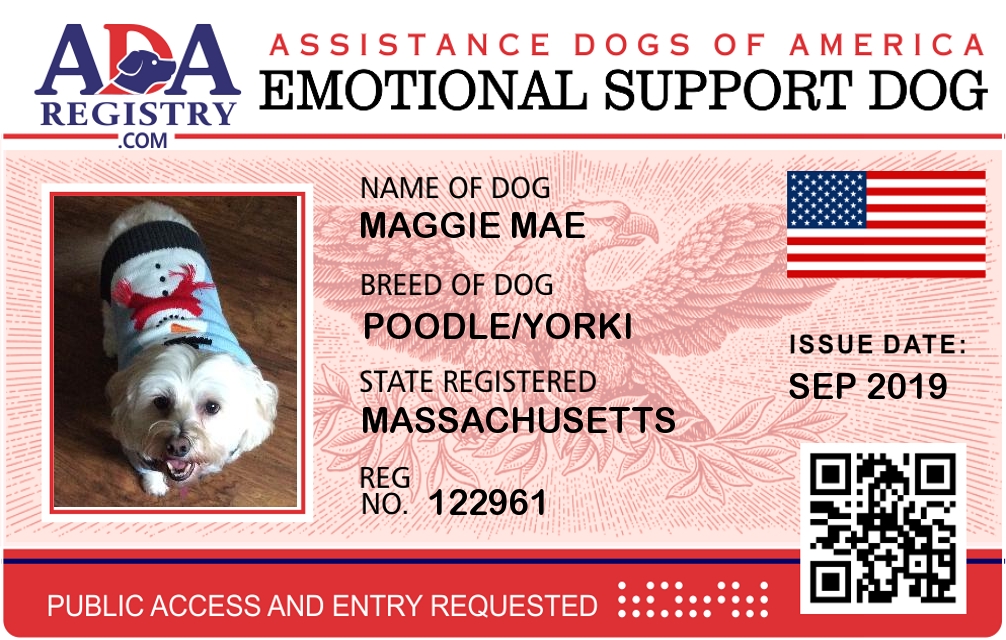 Emotional Support Dog Registration for Maggie Mae