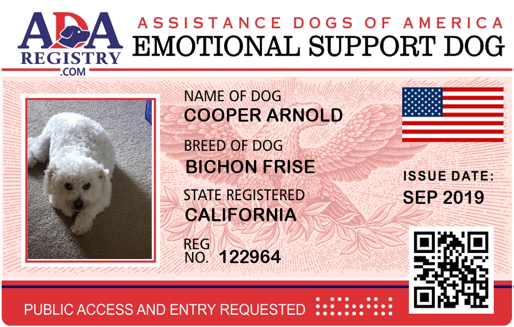 Emotional Support Dog Registration for Cooper Arnold