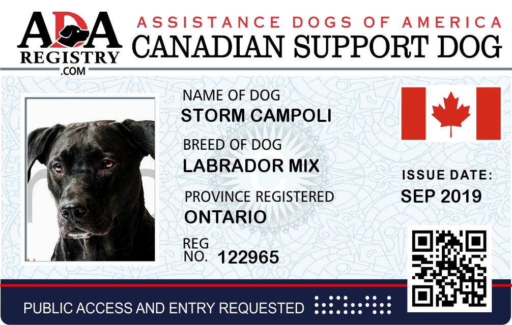 Emotional Support Dog Registration for Storm Campoli
