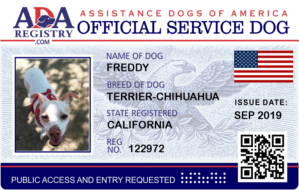 Service Dog Registration for Freddy
