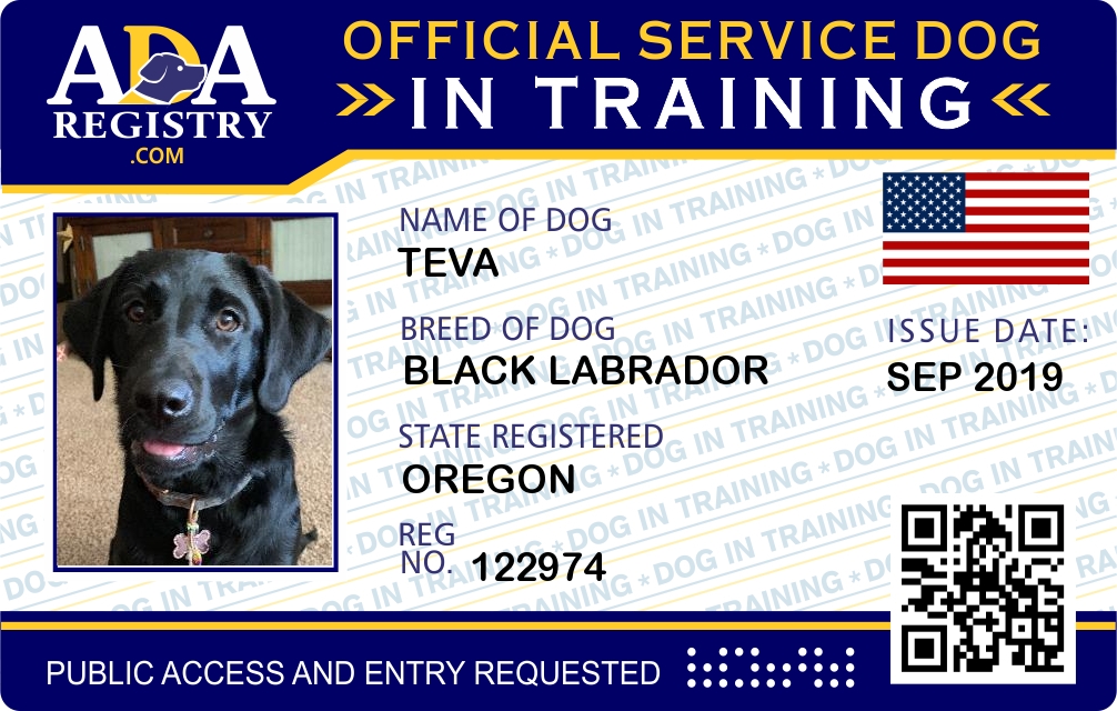 Service Dog In Training Registration for Teva