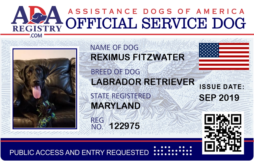Service Dog Registration for Reximus Fitzwater