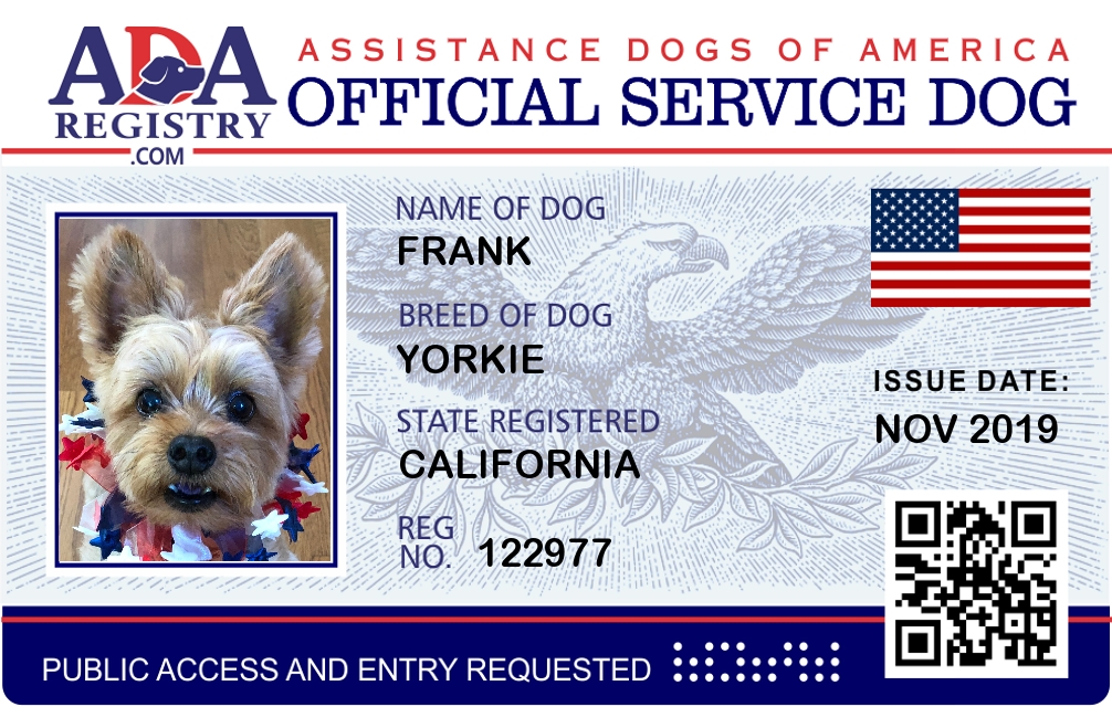 Service Dog Registration for Frank