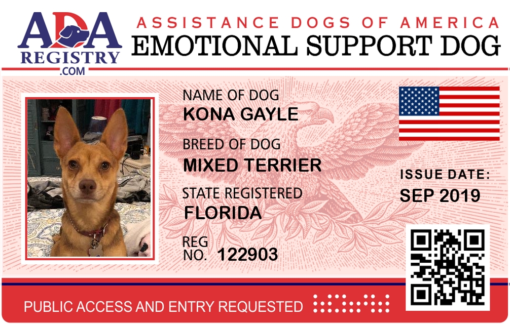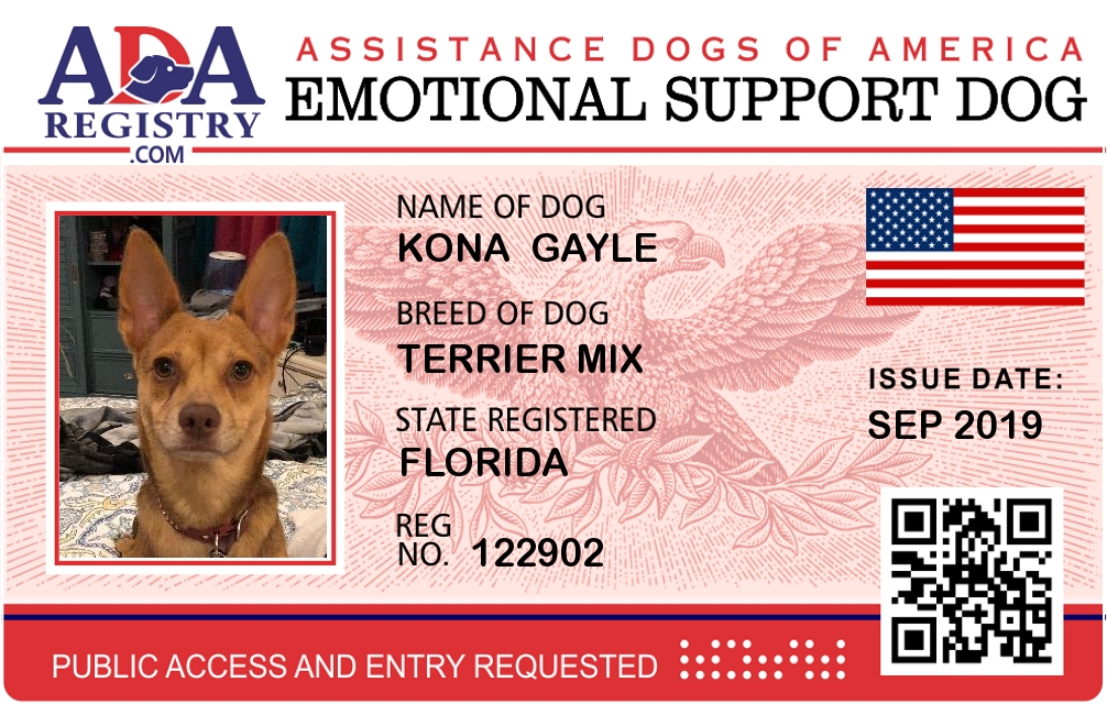 Emotional Support Dog Registration for Kona Gayle