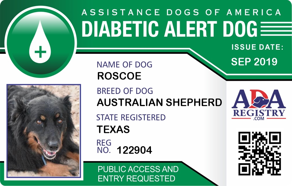 Diabetic Alert Dog Registration for Roscoe