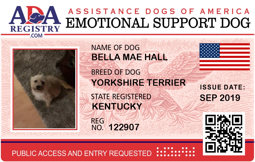 Emotional Support Dog Registration for Bella mae Hall