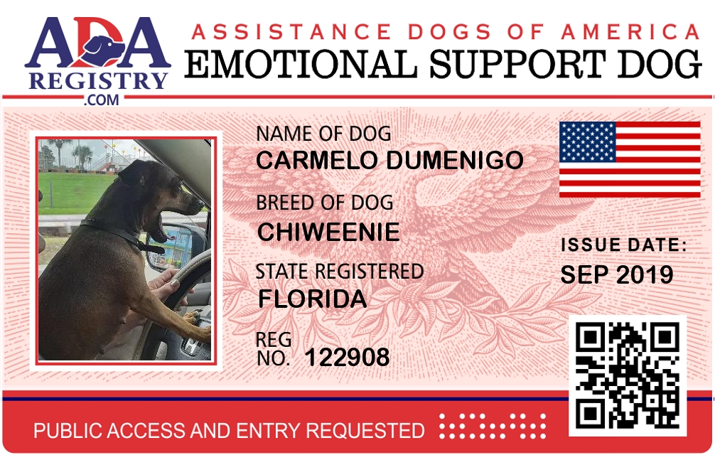Emotional Support Dog Registration for Carmelo Dumenigo