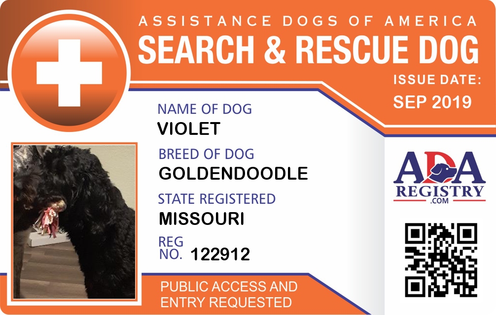Search And Rescue Dog Registration for Violet