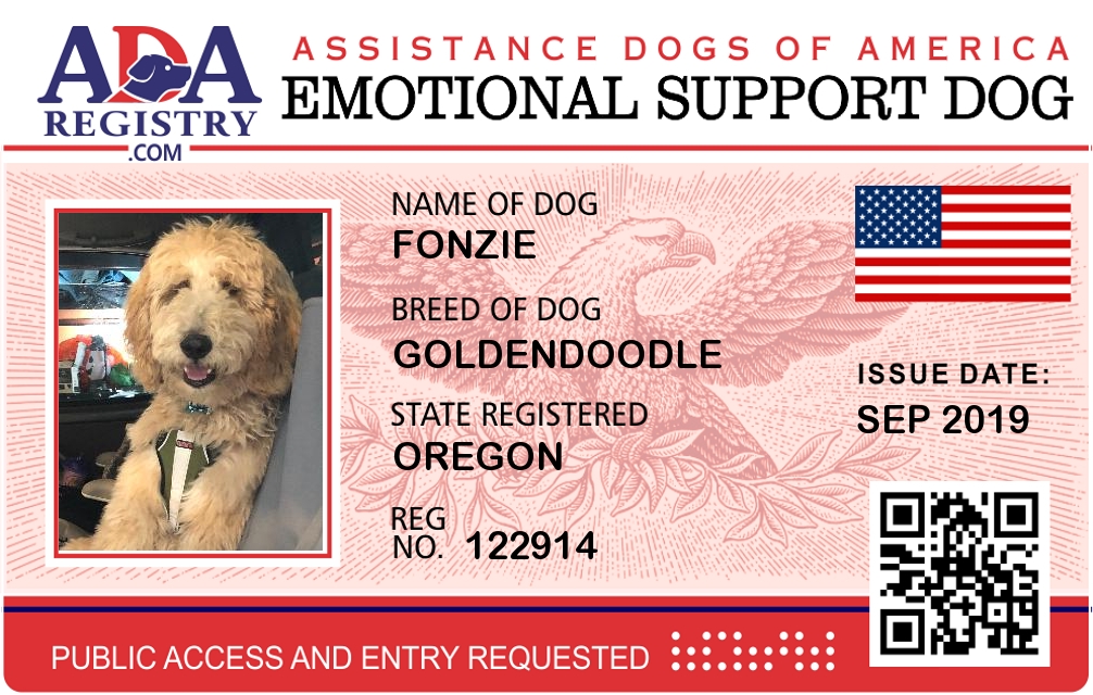 Emotional Support Dog Registration for Fonzie