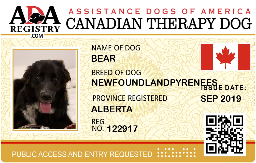Therapy Dog Registration for Bear