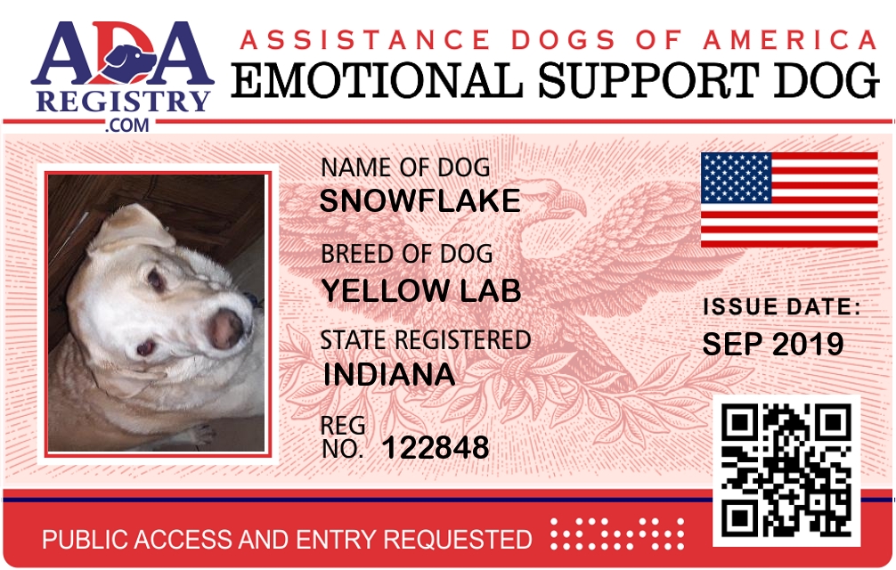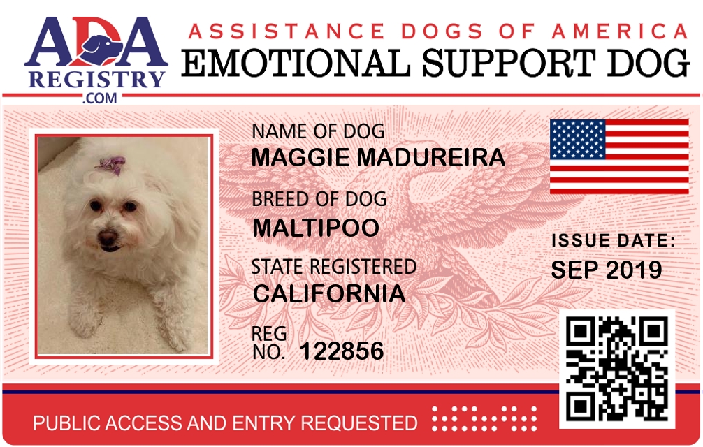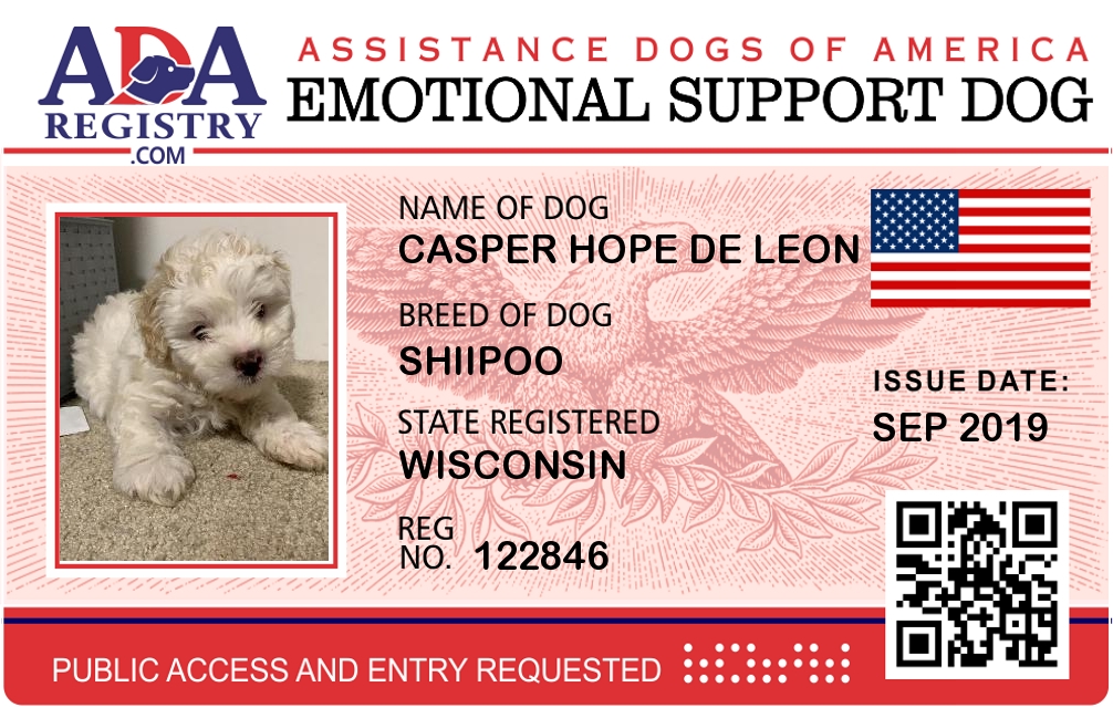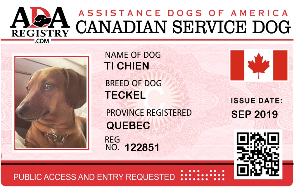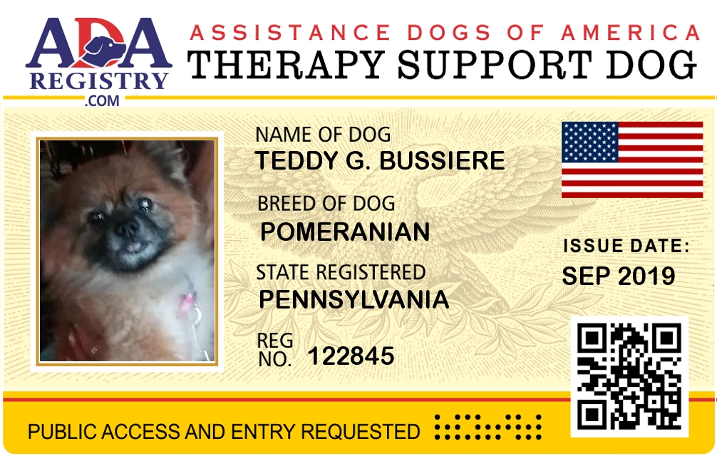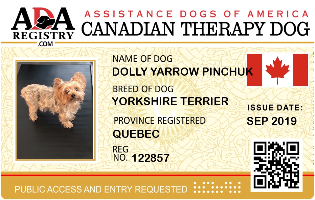 Therapy Dog Registration for Dolly Yarrow Pinchuk
