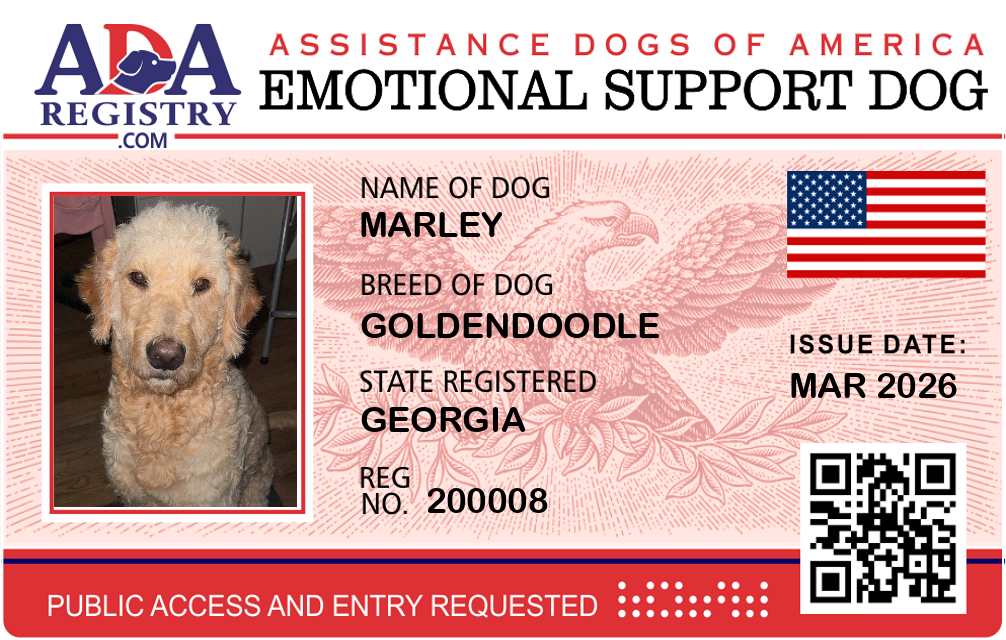 PTSD Assistance Dog Registration for Baileys C. Moreau