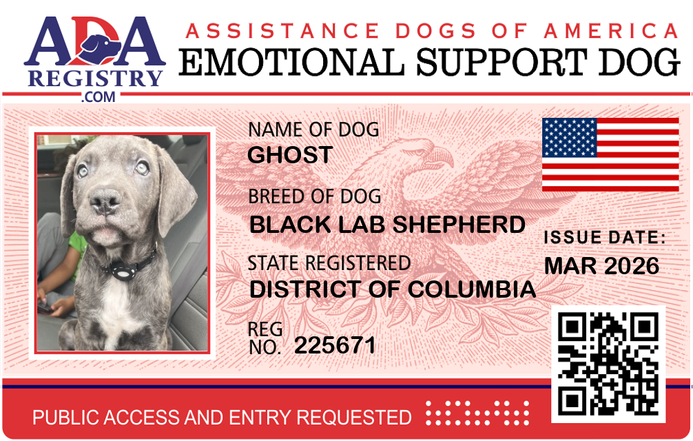 Emotional Support Dog Registration for Ghost