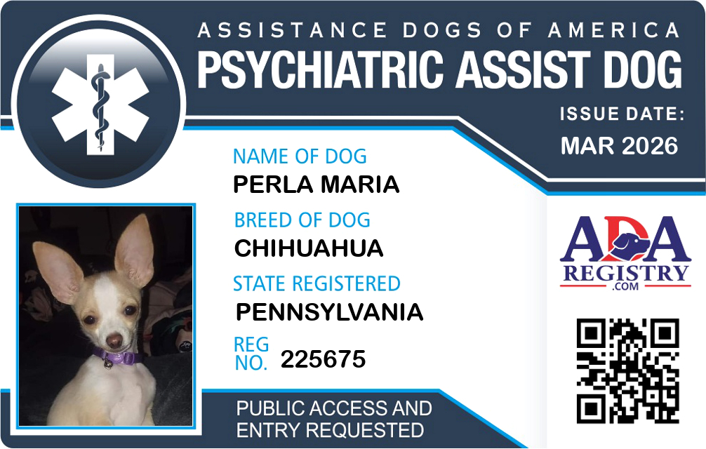 Psychiatric Service Dog Registration for Perla Maria