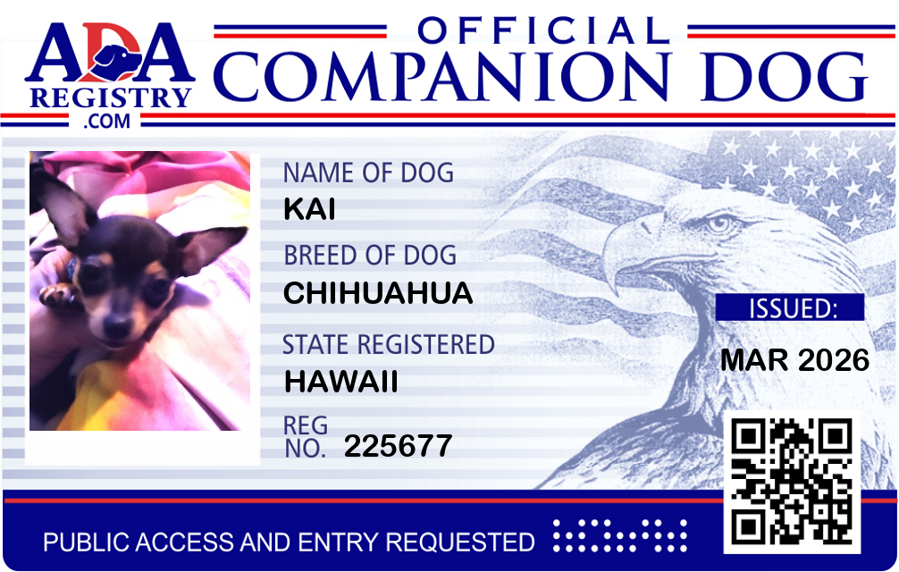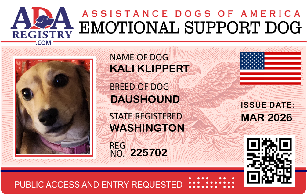 Emotional Support Dog Registration for Kali Klippert