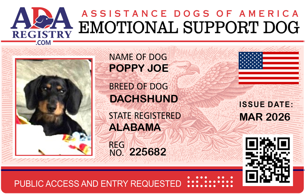 Emotional Support Dog Registration for Poppy Joe