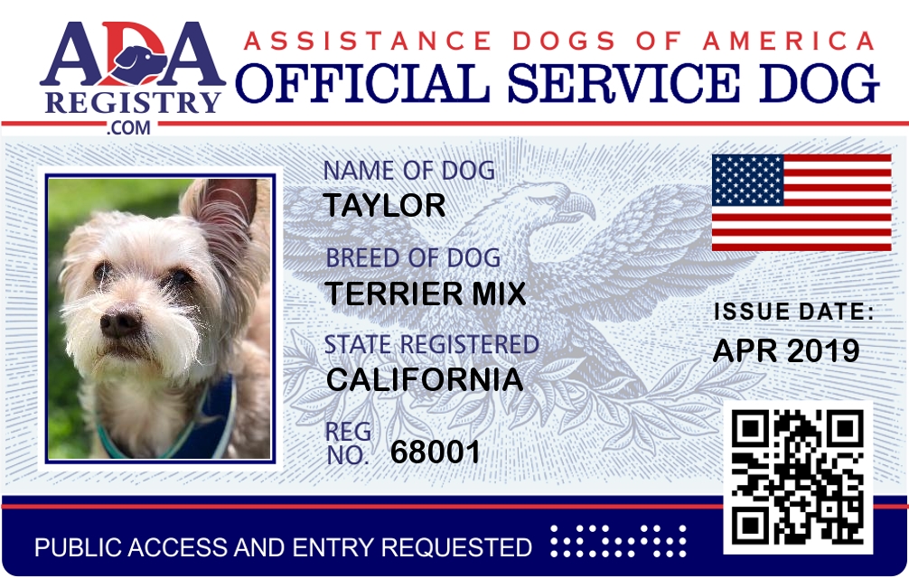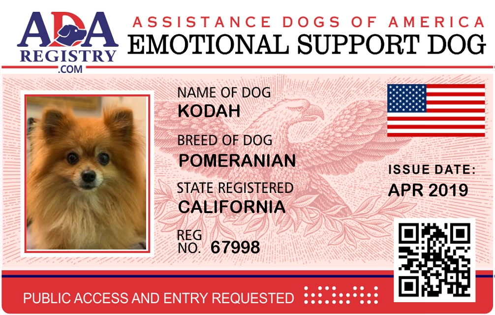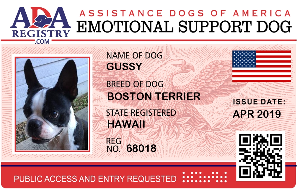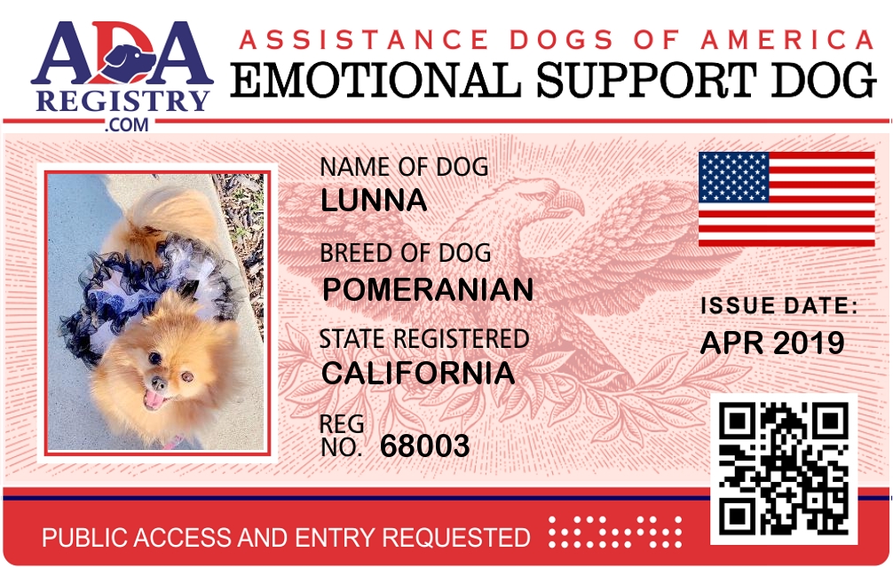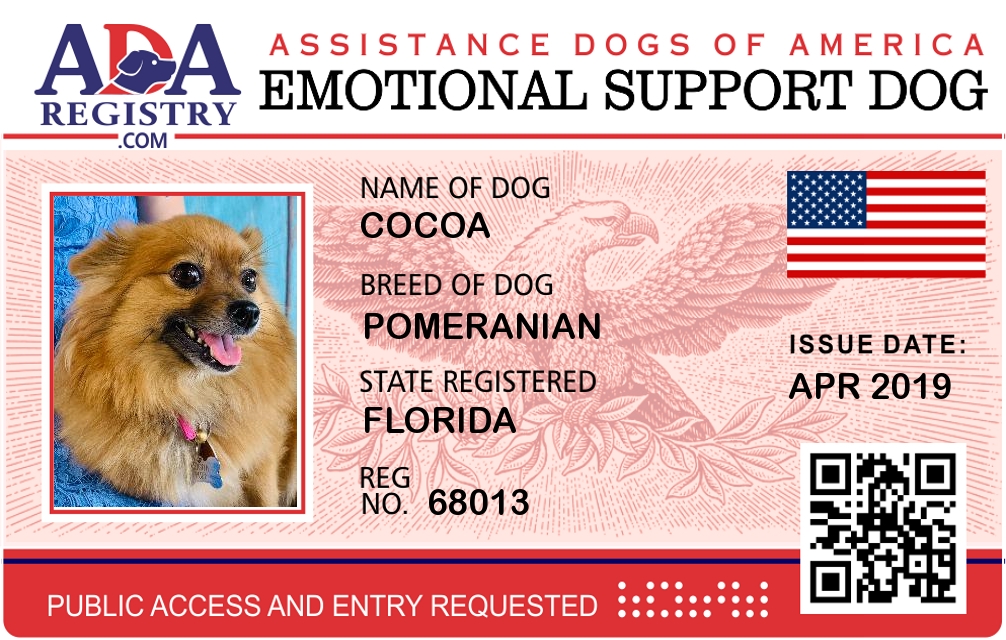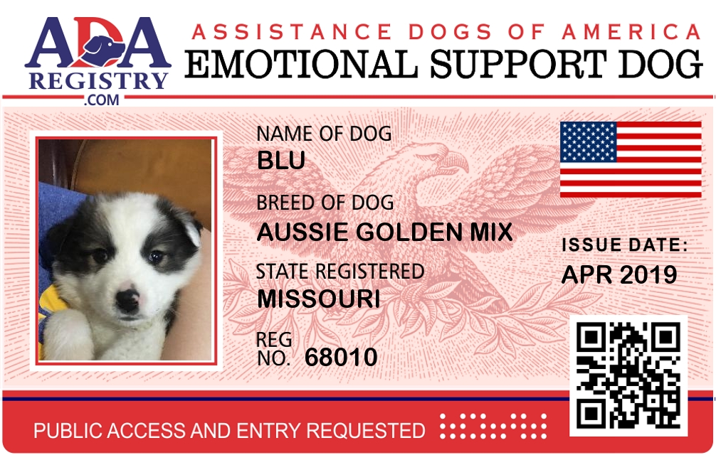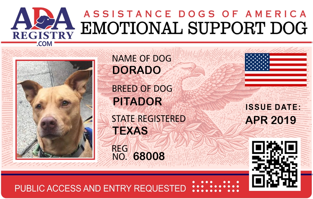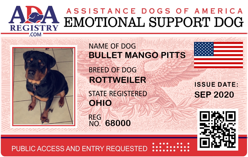 Emotional Support Dog Registration for Bullet Mango Pitts