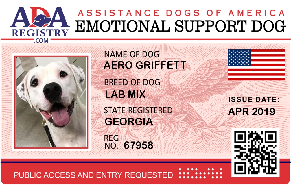 Emotional Support Dog Registration for Aero Griffett