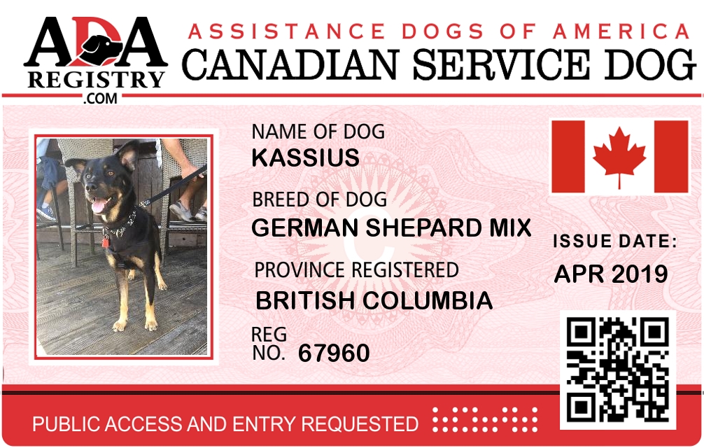 Service Dog Registration for Kassius