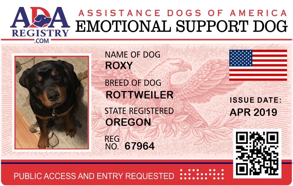 Emotional Support Dog Registration for Roxy