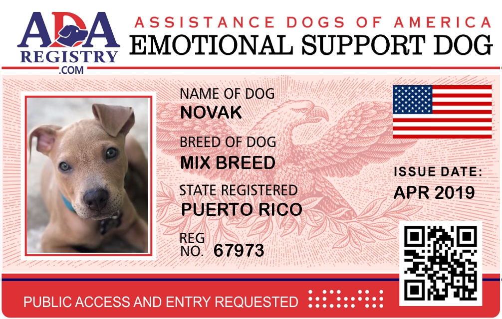 Emotional Support Dog Registration for NOVAK