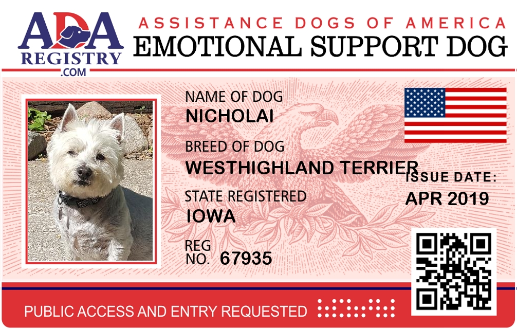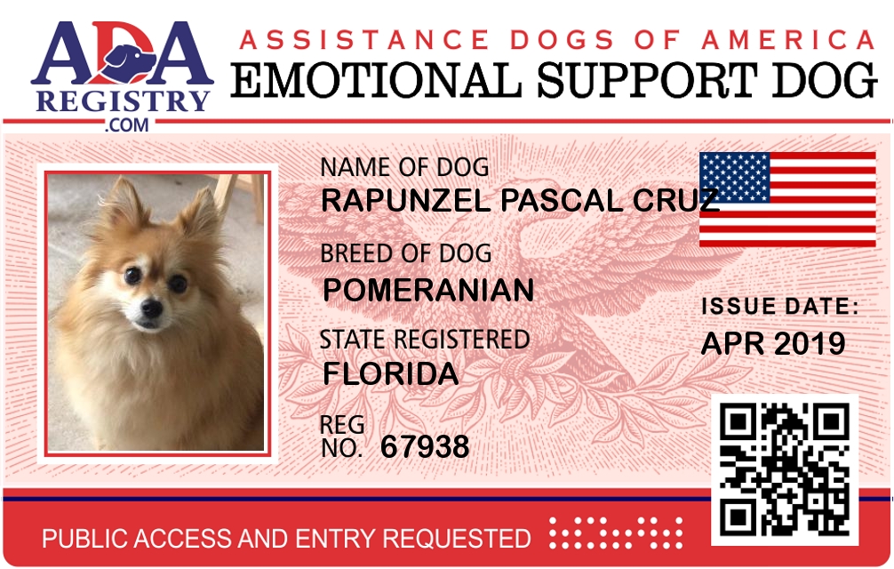 Emotional Support Dog Registration for Rapunzel Pascal Cruz