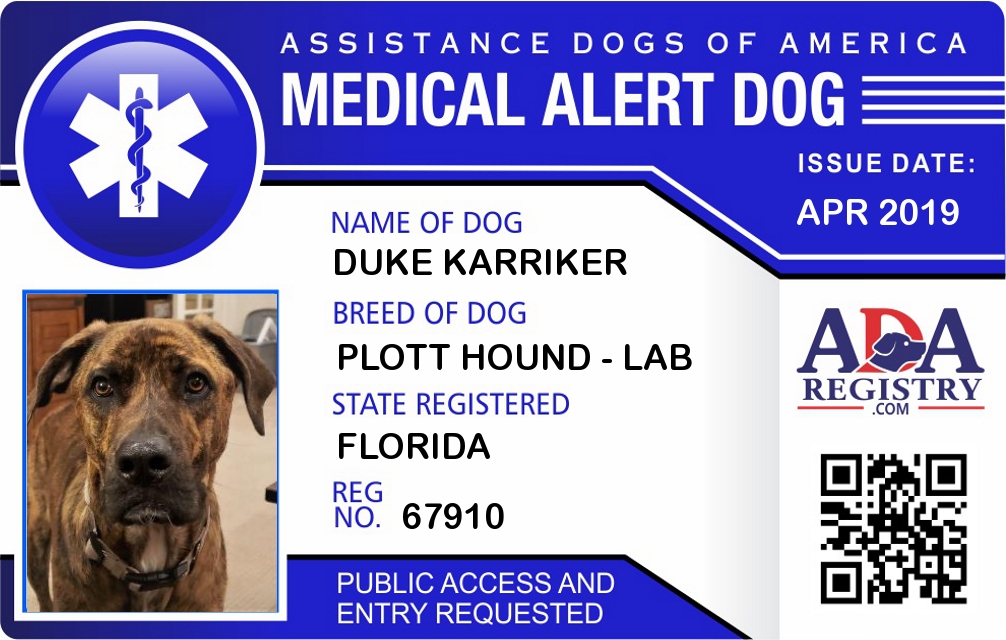 Medical Alert Dog Registration for DUKE KARRIKER