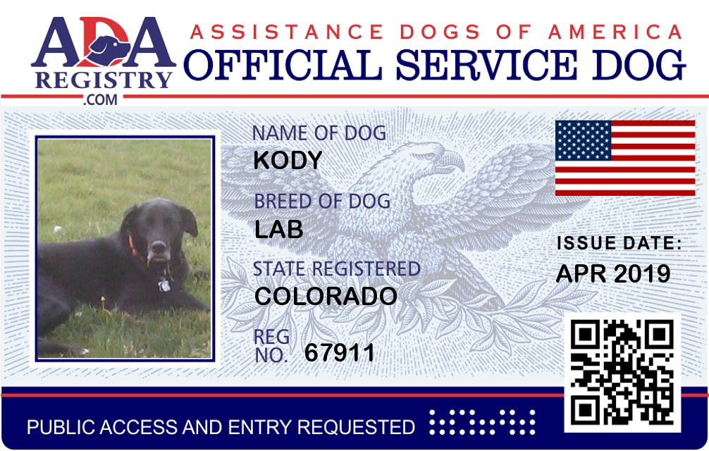 Service Dog Registration for Kody